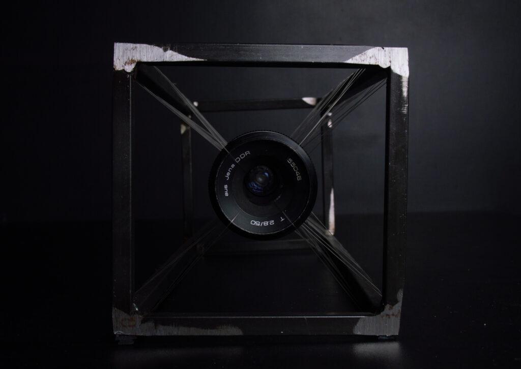 This project was an investigation into a Carl Zeiss 50 mm mechanical camera lens. I wanted to know how the inside of it was made and how the mechanics of it works. After completely disassembling it, I’ve hung it in a steel frame for display. Here you can beautifully see all the tiny parts and moving elements.